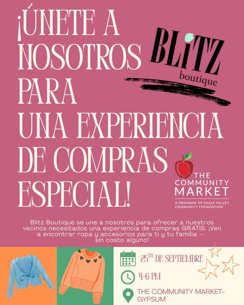 Blitz Boutique is partnering with The Community Market to provide our neighbors in need with a FREE shopping experience. Come find clothing and accessories for you and your family — at no cost!