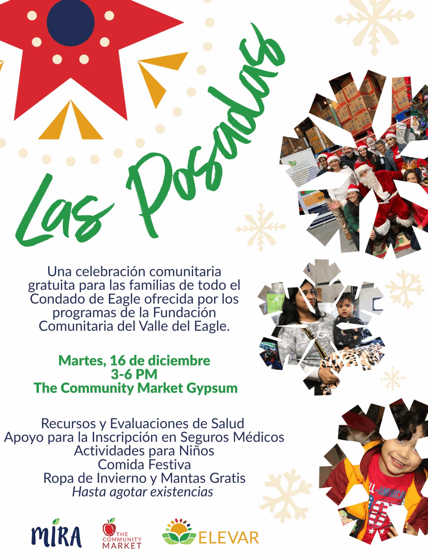 A free community celebration for families across Eagle County brought to you by the programs of Eagle Valley Community Foundation. Tuesday, December 16 | 3:00-6:00 PM | The Community Market Gypsum Health Resources & Screenings Insurance Enrollment Support Family Fun ...